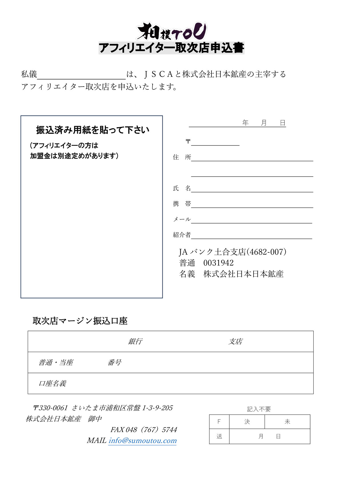 アフィリエイター申込書